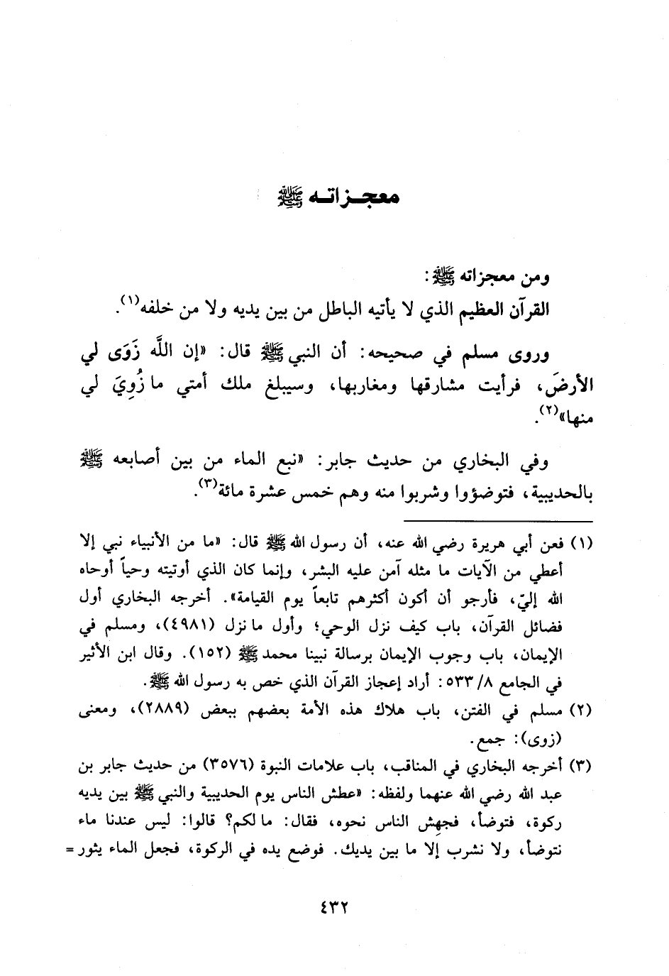 (¬1) فعن أبي هريرة رضي الله عنه، أن رسول الله صلى الله عليه وسلم قال: «ما من الأنبياء نبي إلا أعطي من الآيات ما مثله آمن عليه البشر، وإنما كان الذي أوتيته وحيا أوحاه الله إليّ، فأرجو أن أكون أكثرهم تابعا يوم القيامة». أخرجه البخاري أول فضائل القرآن، باب كيف نزل الوحي؛ وأول ما نزل (4981)، ومسلم في الإيمان، باب وجوب الإيمان برسالة نبينا محمد صلى الله عليه وسلم (152). وقال ابن الأثير في الجامع 8/ 533: أراد إعجاز القرآن الذي خص به رسول الله صلى الله عليه وسلم.