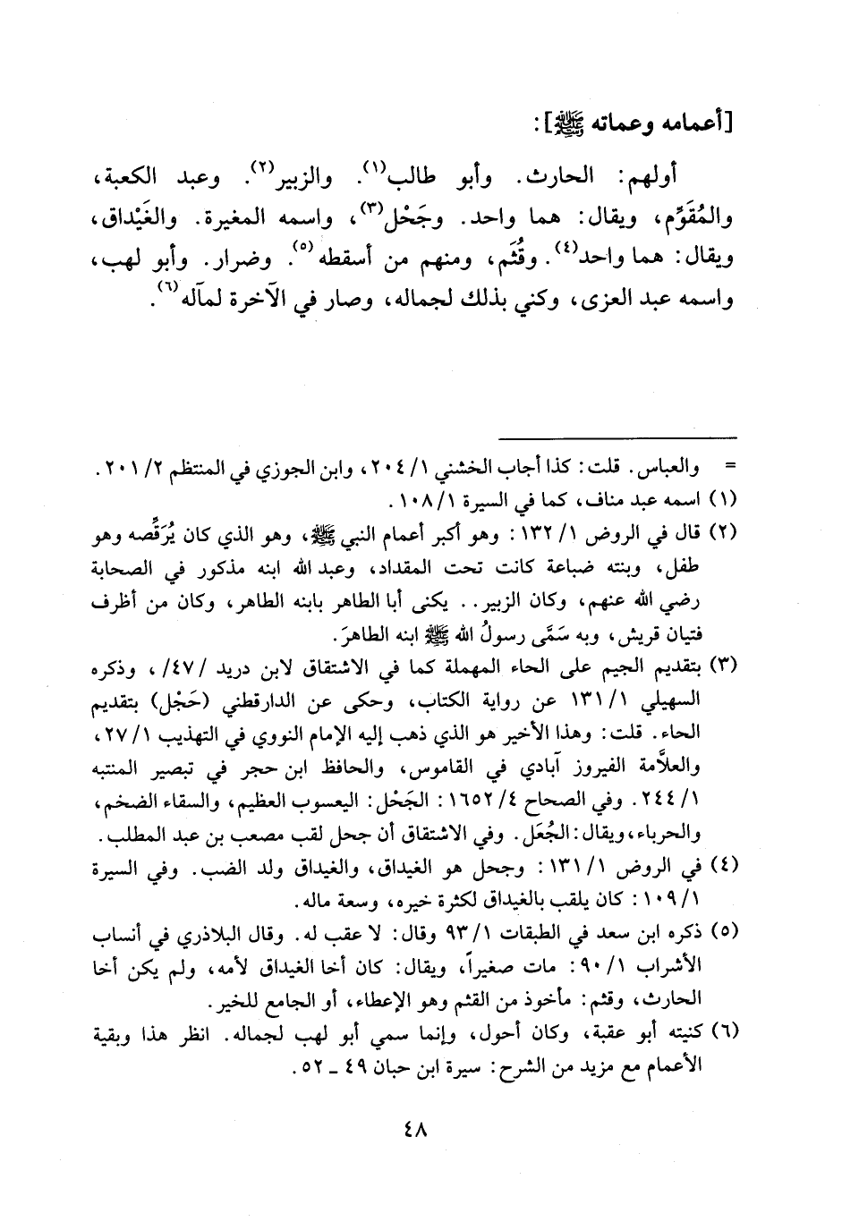 (¬6) كنيته أبو عقبة، وكان أحول، وإنما سمي أبو لهب لجماله. انظر هذا وبقية الأعمام مع مزيد من الشرح: سيرة ابن حبان 49 - 52.