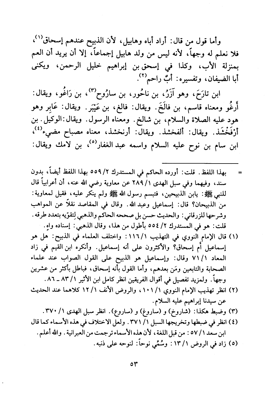 (¬2) انظر تهذيب الإمام النووي 1/ 101، والروض الأنف 1/ 12 كلاهما عند الحديث عن سيدنا إبراهيم عليه السلام.