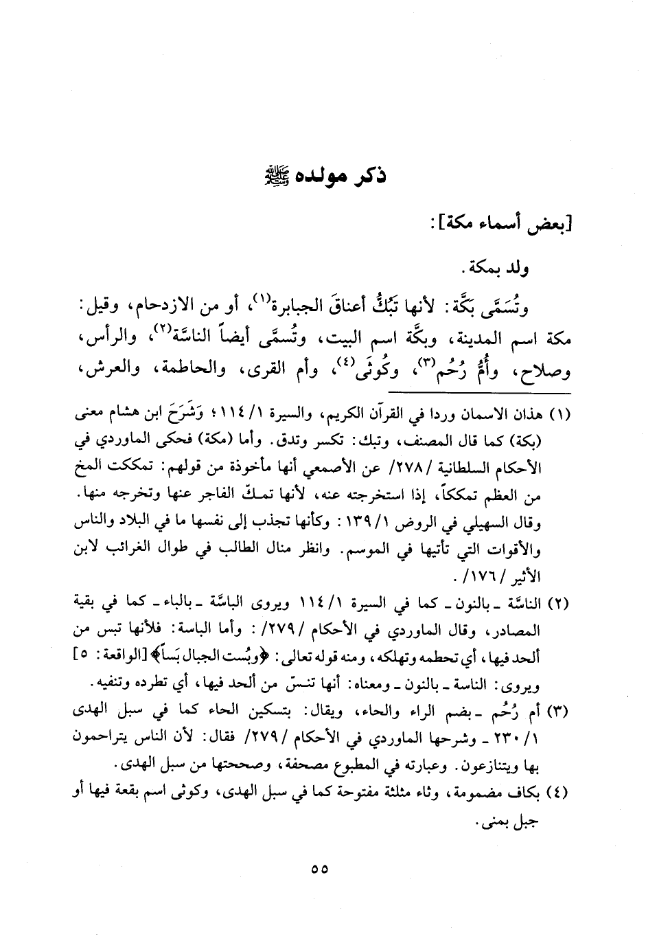 (¬2) الناسّة-بالنون-كما في السيرة 1/ 114 ويروى الباسّة-بالباء-كما في بقية المصادر، وقال الماوردي في الأحكام/279/: وأما الباسة: فلأنها تبس من ألحد فيها، أي تحطمه وتهلكه، ومنه قوله تعالى: وَبُسَّتِ الْجِبالُ بَسًّا [الواقعة:5] ويروى: الناسة-بالنون-ومعناه: أنها تنسّ من ألحد فيها، أي تطرده وتنفيه.