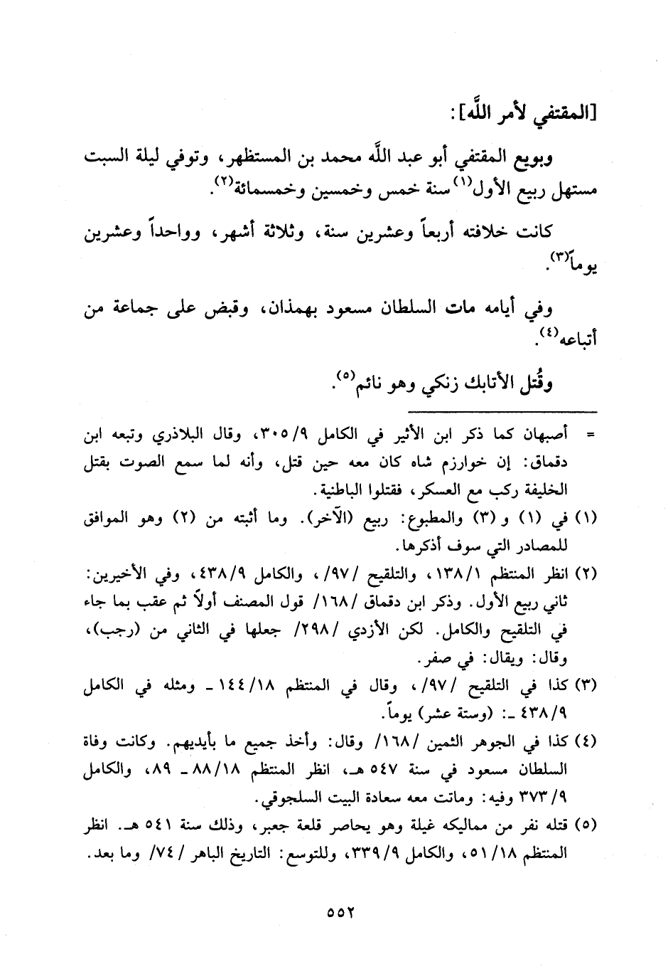 (¬5) قتله نفر من مماليكه غيلة وهو يحاصر قلعة جعبر، وذلك سنة 541 هـ. انظر المنتظم 18/ 51، والكامل 9/ 339، وللتوسع: التاريخ الباهر/74/وما بعد.