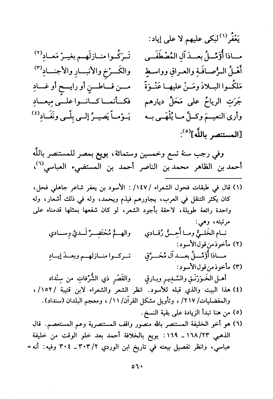 (¬2) مأخوذ من قول الأسود: ماذا أومّل بعد آل محرّق تركوا منازلهم وبعد إياد
