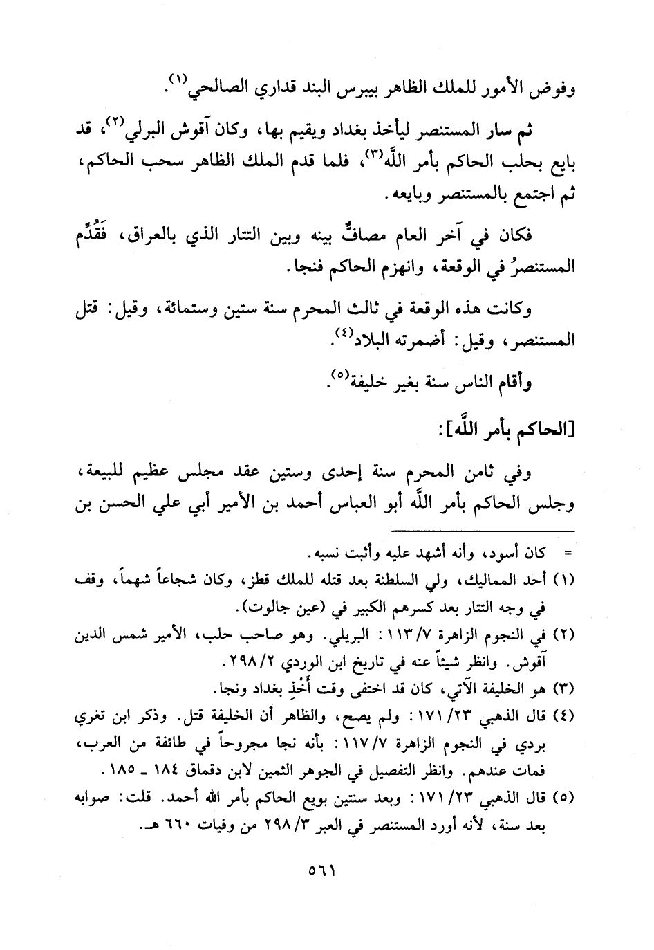 (¬5) قال الذهبي 23/ 171: وبعد سنتين بويع الحاكم بأمر الله أحمد. قلت: صوابه بعد سنة، لأنه أورد المستنصر في العبر 3/ 298 من وفيات 660 هـ.