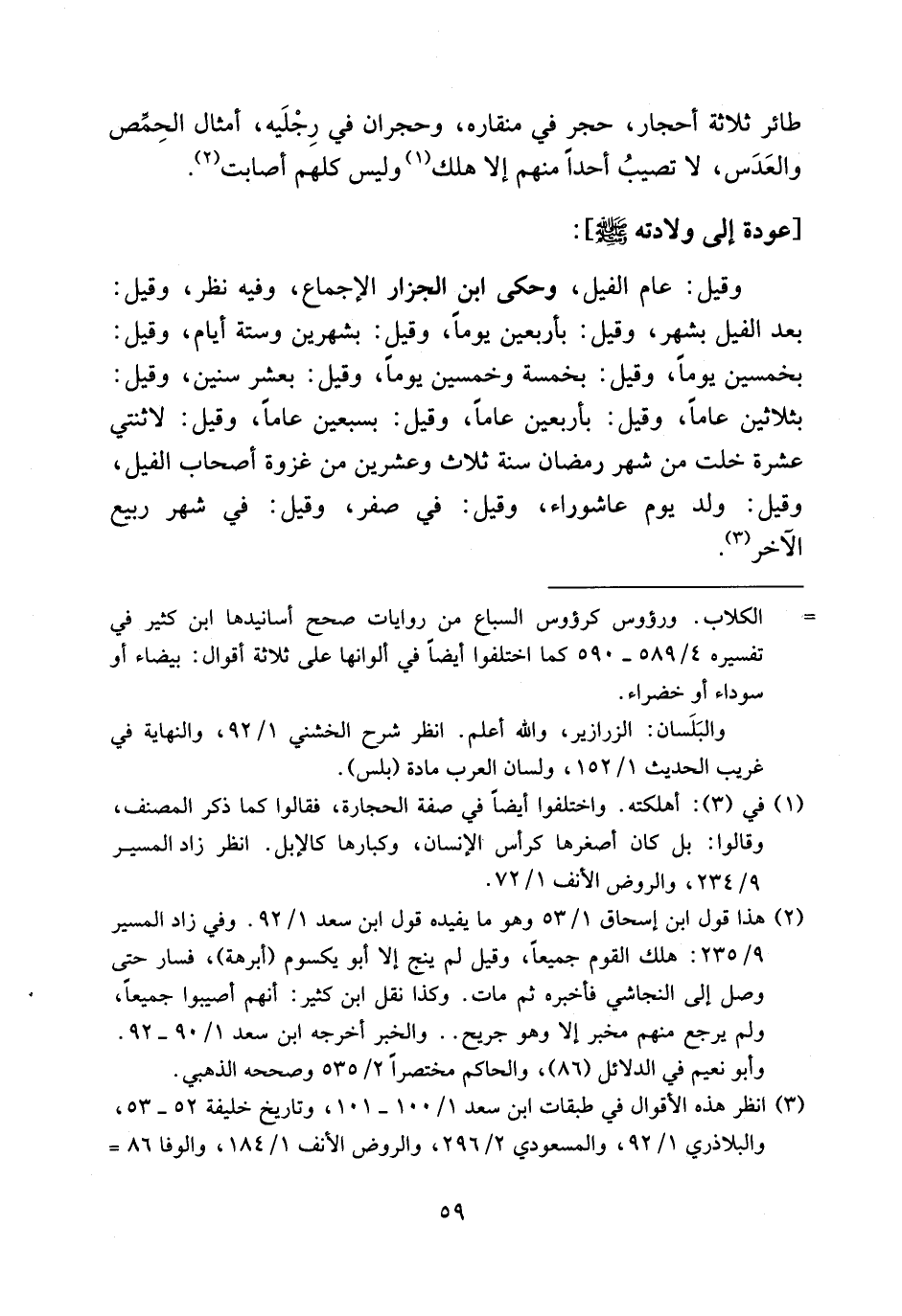 (¬2) هذا قول ابن إسحاق 1/ 53 وهو ما يفيده قول ابن سعد 1/ 92. وفي زاد المسير 9/ 235: هلك القوم جميعا، وقيل لم ينج إلا أبو يكسوم (أبرهة)، فسار حتى وصل إلى النجاشي فأخبره ثم مات. وكذا نقل ابن كثير: أنهم أصيبوا جميعا، ولم يرجع منهم مخبر إلا وهو جريح. . والخبر أخرجه ابن سعد 1/ 90 - 92. وأبو نعيم في الدلائل (86)، والحاكم مختصرا 2/ 535 وصححه الذهبي.