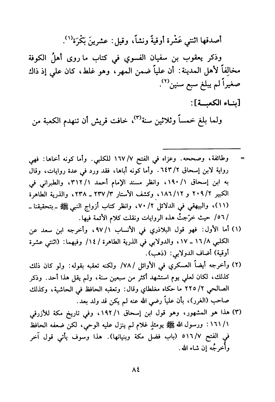(¬1) أما الأول: فهو قول البلاذري في الأنساب 1/ 97، وأخرجه ابن سعد عن الكلبي 8/ 16 - 17، والدولابي في الذرية الطاهرة/14/وفيهما: (اثنتي عشرة أوقية) أضاف الدولابي: (ذهب).