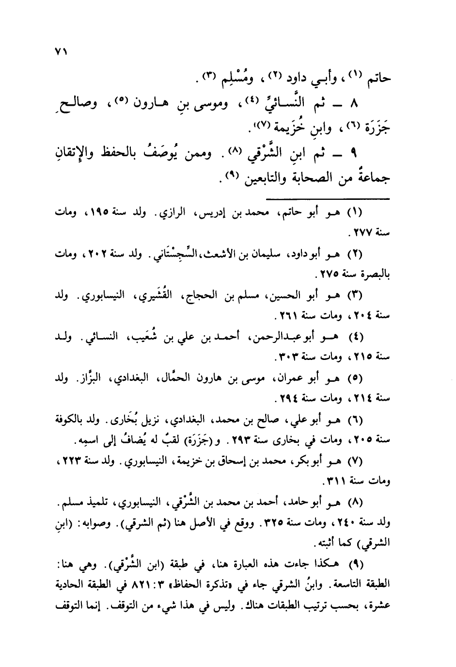 8- النَّسائيّ، وموسى بن هارون، وصالح جَزَرَة، وابن خُزَيمة. ثم: