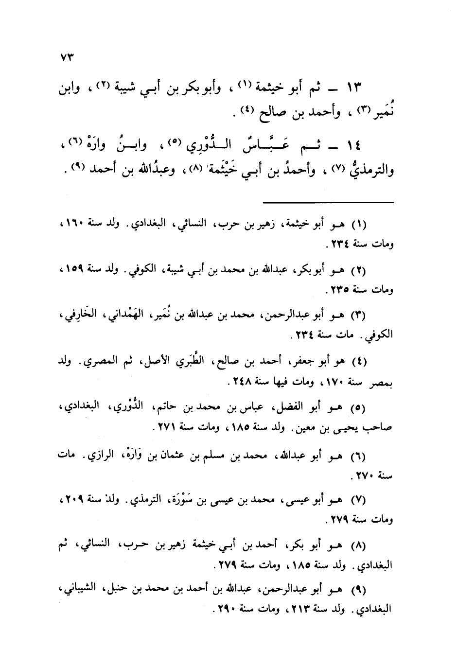 13- أبو خيثمة، وأبو بكر بن أبي شيبة، وابن نُمَير، وأحمد بن صالح. ثم: