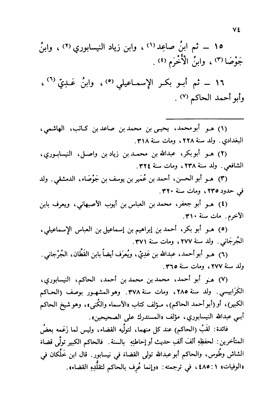 15- ابنُ صاعِد، وابن زياد النيسابوريّ، وابن جَوْصَا، وابن الأَخْرَم. ثم: