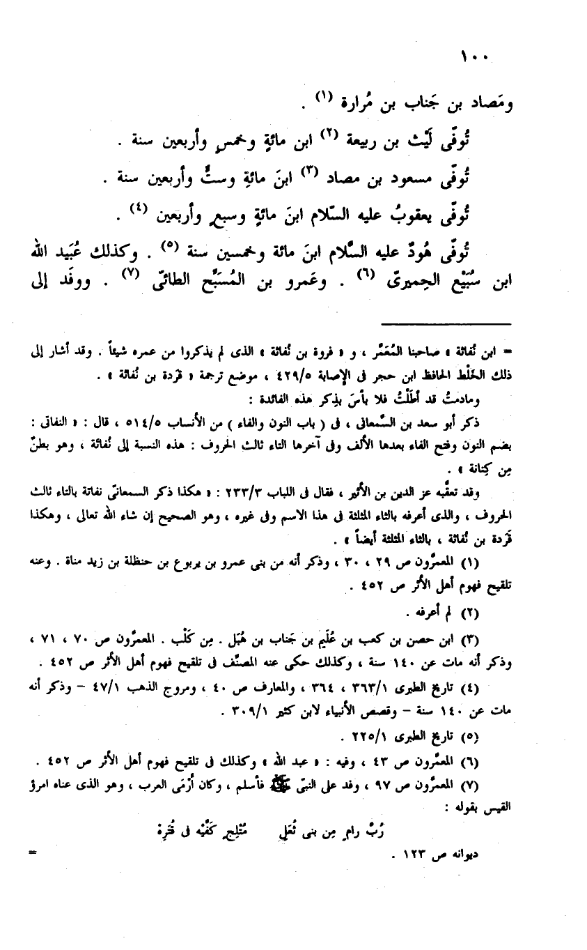 (¬١) المعمِّرون ص ٢٩، ٣٠، وذكر أنه من بنى عمرو بن يربوع بن حنظلة بن زيد مناة. وعنه تلقيح فهوم أهل الأثر ص ٤٥٢.