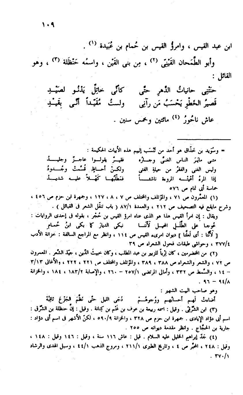 (¬٣) ابن الشَّرْقِيّ. وقيل: اسمه ربيعة بن عوف بن غَنْم بن كِنانة. وقيل: إنَّ حنظلة بن الشّرْقي: اسم أبو دؤاد الإيادي. جمهرة ابن حزم ص ٣٢٨، والخزانة ٩/ ٥٩٠، لكنّ الأشهر في اسم أبى دؤاد: جارية بن الحجَّاج. وانظر مقدمة ديوانه ص ٢٥٥.