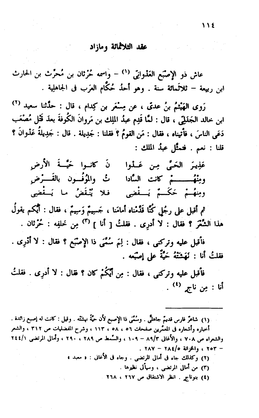 عاش ذو الإصْبَع العَدْوانِيّ (¬١) -واسمه حُرْثان بن مُحرِّث بن الحارث ابن ربيعة- ثلاثَمائة سنة. وهو أحدُ حُكَّام العرب فى الجاهلِية.