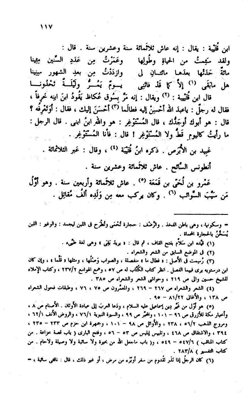 ابن قُتَيْبة: يقال: إنه عاش ثلاثَمائة سنة وعشرين سنة. قال:
