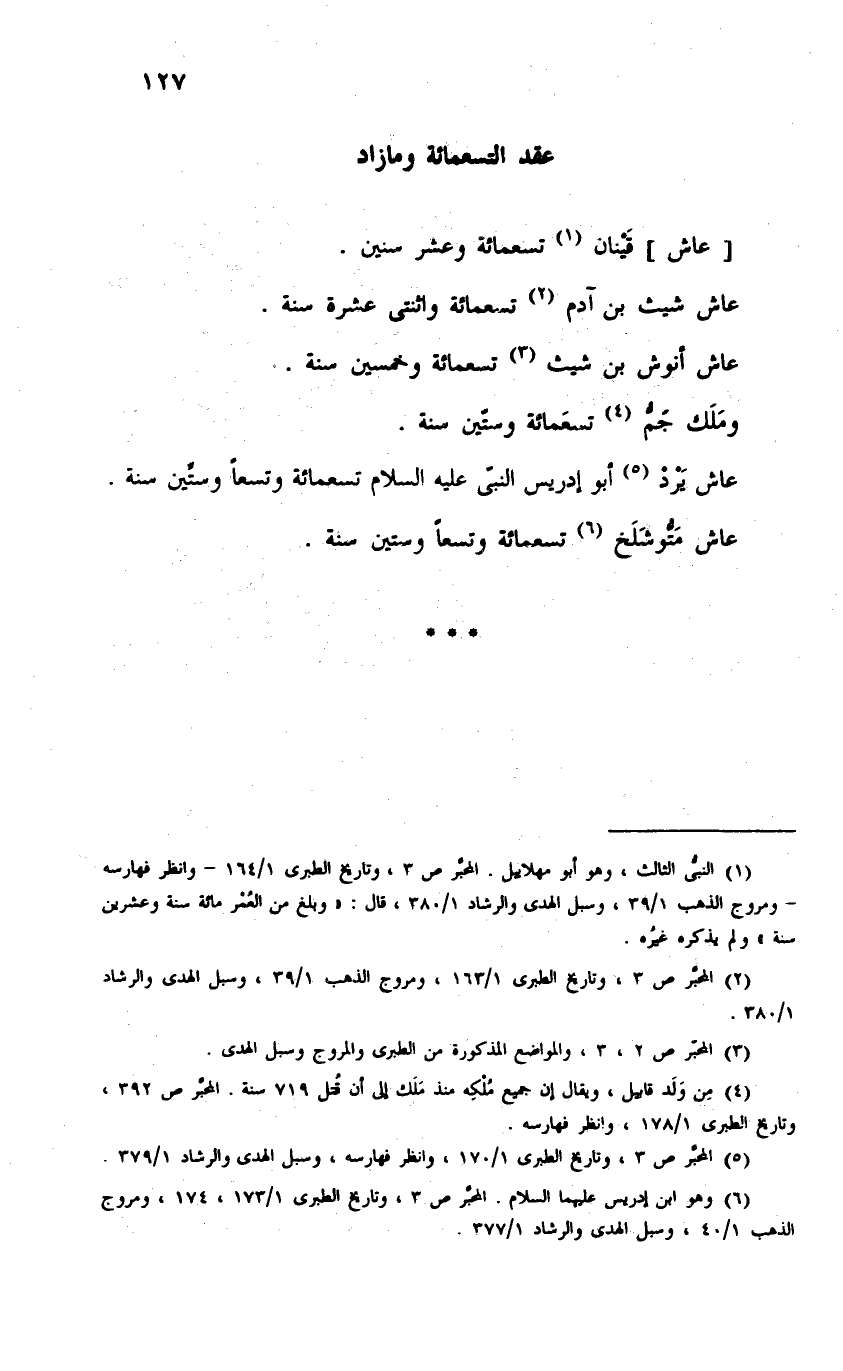 عاش يَرْدْ (¬٥) أبو إدريس النبىّ عليه السلام تسعمائة وتسعًا وستِّين سنة.