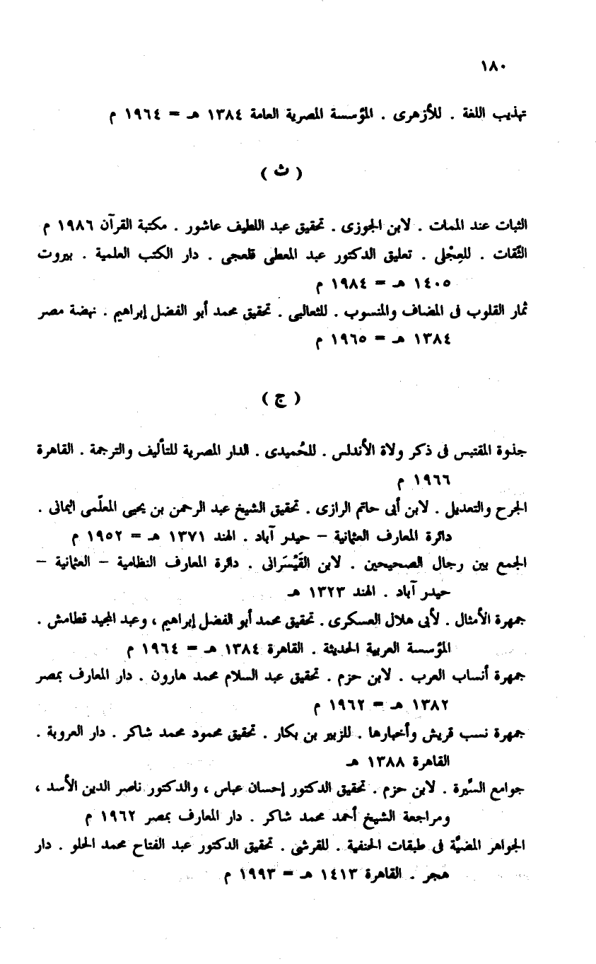 الثّقات. للعِجْلى. تعليق الدكتور عبد المعطى قلعجى. دار الكتب العلمية. بيروت ١٤٠٥ هـ = ١٩٨٤ م.