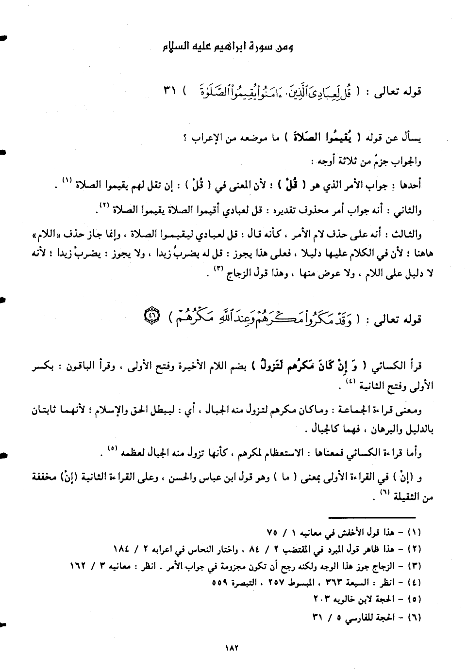 والثانى: أنّه جواب أمر محذوف تقديره: قل لعبادي أقيموا الصلاة يقيموا الصلاة.