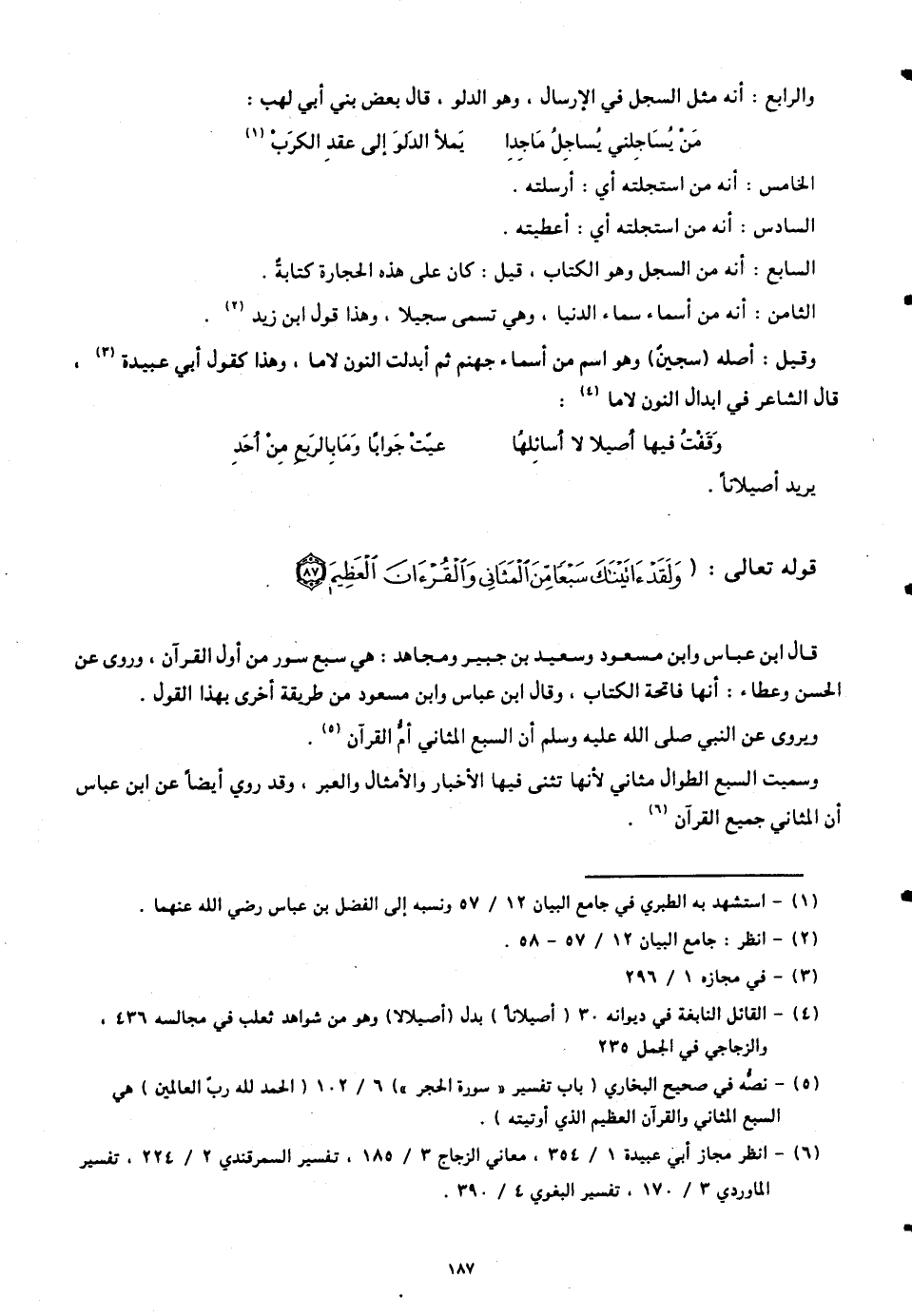 قوله تعالى: (وَلَقَدْ آتَيْنَاكَ سَبْعًا مِنَ الْمَثَانِي وَالْقُرْآنَ الْعَظِيمَ (87))