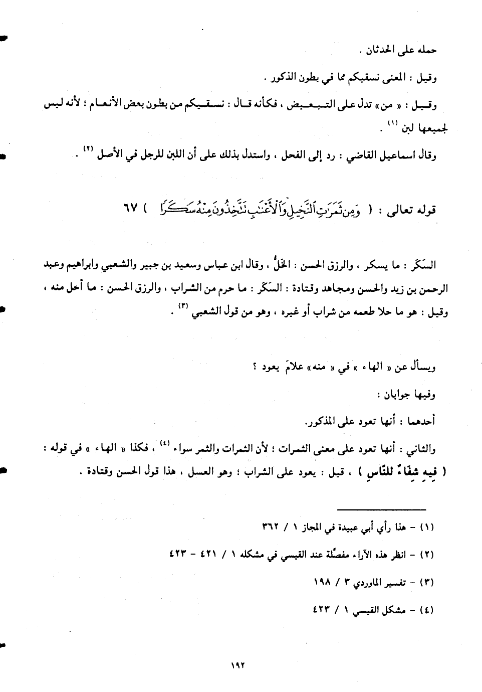 قوله تعالى: (وَمِنْ ثَمَرَاتِ النَّخِيلِ وَالْأَعْنَابِ تَتَّخِذُونَ مِنْهُ سَكَرًا)
