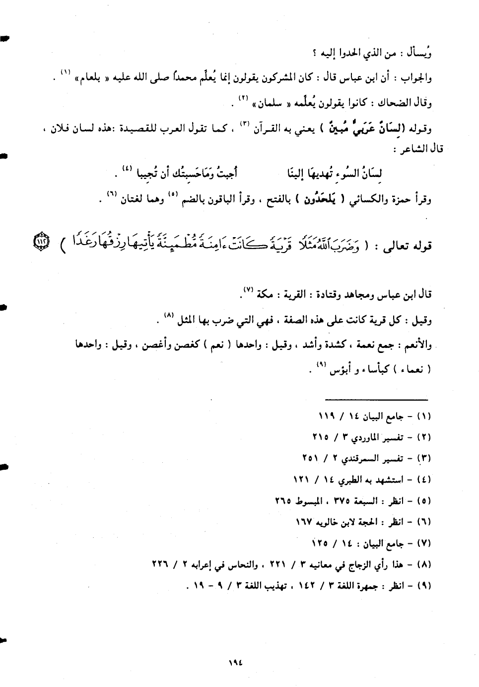 والجواب: أنّ ابن عباس قال: كان المشركون يقولون إنما يُعلم محمدا - صلى الله عليه وسلم - " بلعام ".