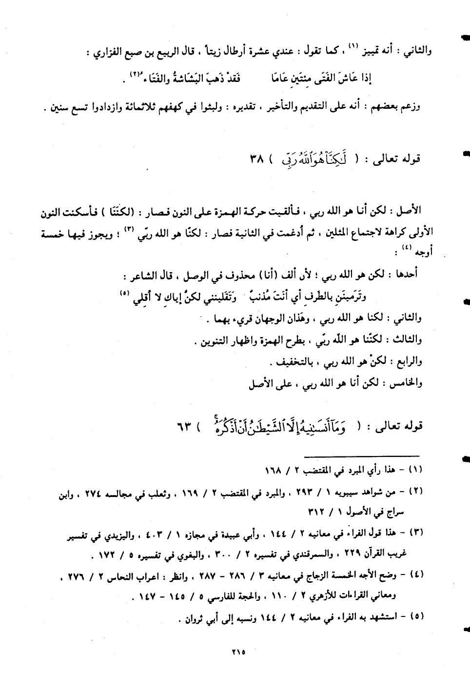 الأصل: لكن أنا هُوَ اللَّهُ رَبِّي، فألقيت حركة الهمزة على النون فصار: (لَكِنَنَا) فأسكنت النون الأولى كراهة لاجتماع المثلين، ثم أدغمت في الثانية فصار: لَكِنَّا هُوَ اللَّهُ رَبِّي؛ ويجوز فيها خمسة أوجه:
