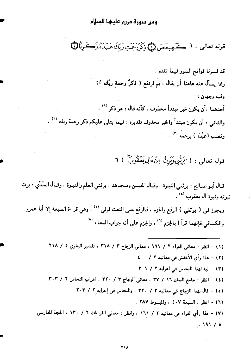 ويجوز فى (يَرِثُنِي) الرفع والجزم، فالرفع على النعت لولي، وهي قراءة السبعة إلا أبا عمرو والكسائي فإنهما قرأا بالجزم، والجزم على أنّه جواب الدعاء.
