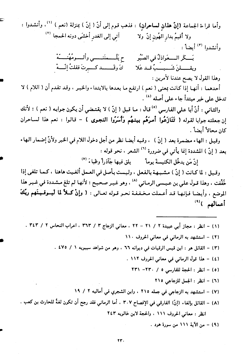وأما قراءة الجماعة (إِنّ هَذَانِ لَسَاحِرَانِ): فذهب قوم إلى أنّ (إنّ) بمنزلة (نعم)، وأنشدوا: