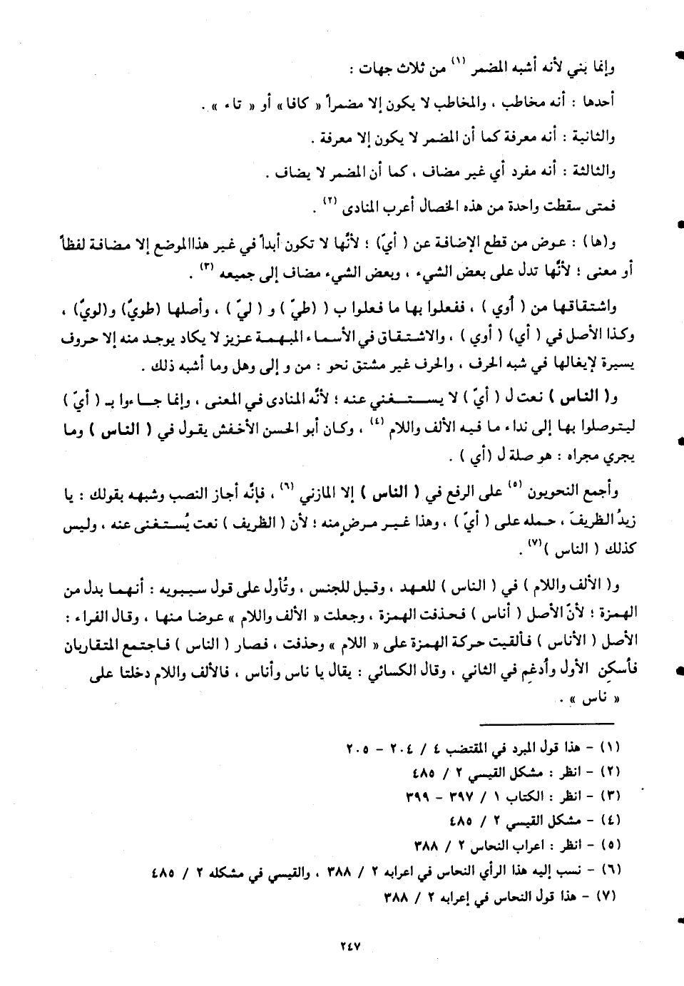 وأجمع النحويون على الرفع في (الناس) إلا المازني، فإنه أجاز النصب وشبهه بقولك: يا زيدُ الظريفَ، حمله على (أيّ)، وهذا غير مرض منه؛ لأنَّ (الظريف) نعت يُستغنى عنه. وليس كذلك (الناس).