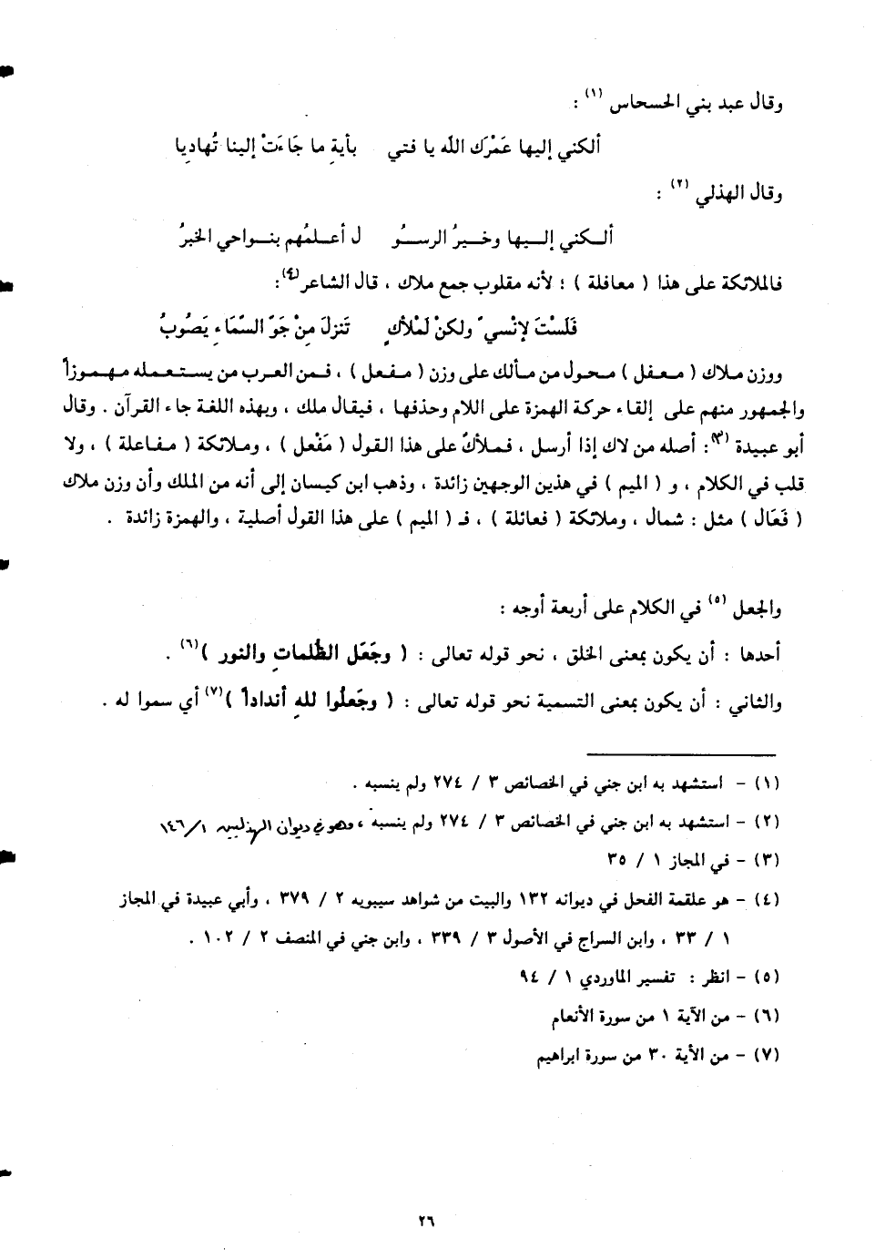 فالملائكة على هذا (معافلة)، لأنّه مقلوب جمع ملاك. قال الشاعر: