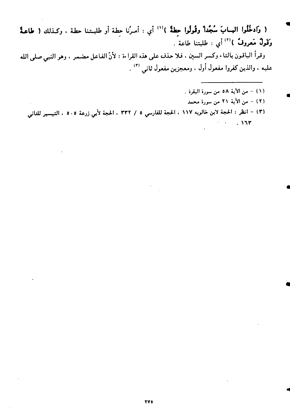 (وَادْخُلُوا الْبَابَ سُجَّدًا وَقُولُوا حِطَّةٌ) أي: أمرُنا حِطة أو طلبتنا حطة، وكذلك (طَاعَةٌ وَقَوْلٌ مَعْرُوفٌ) أي: طلبتنا طاعة.