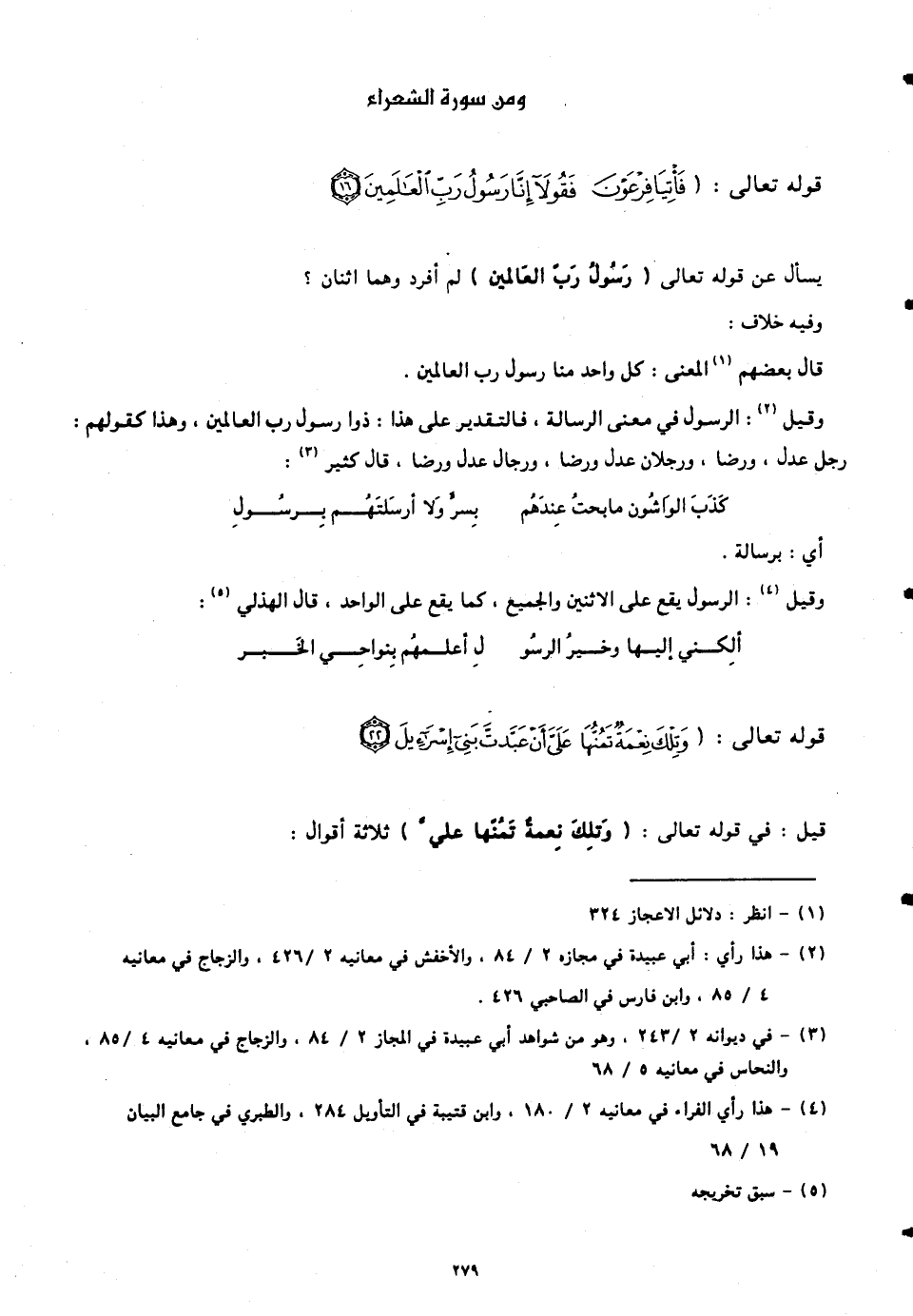 وقيل: الرسول في معنى الرسالة، فالتقدير على هذا: ذوا رسول رب العالمين، وهذا كقولهم: رجل عدل، ورضا. ورجلان عدل ورضا، ورجال عدل ورضا، قال كثير: