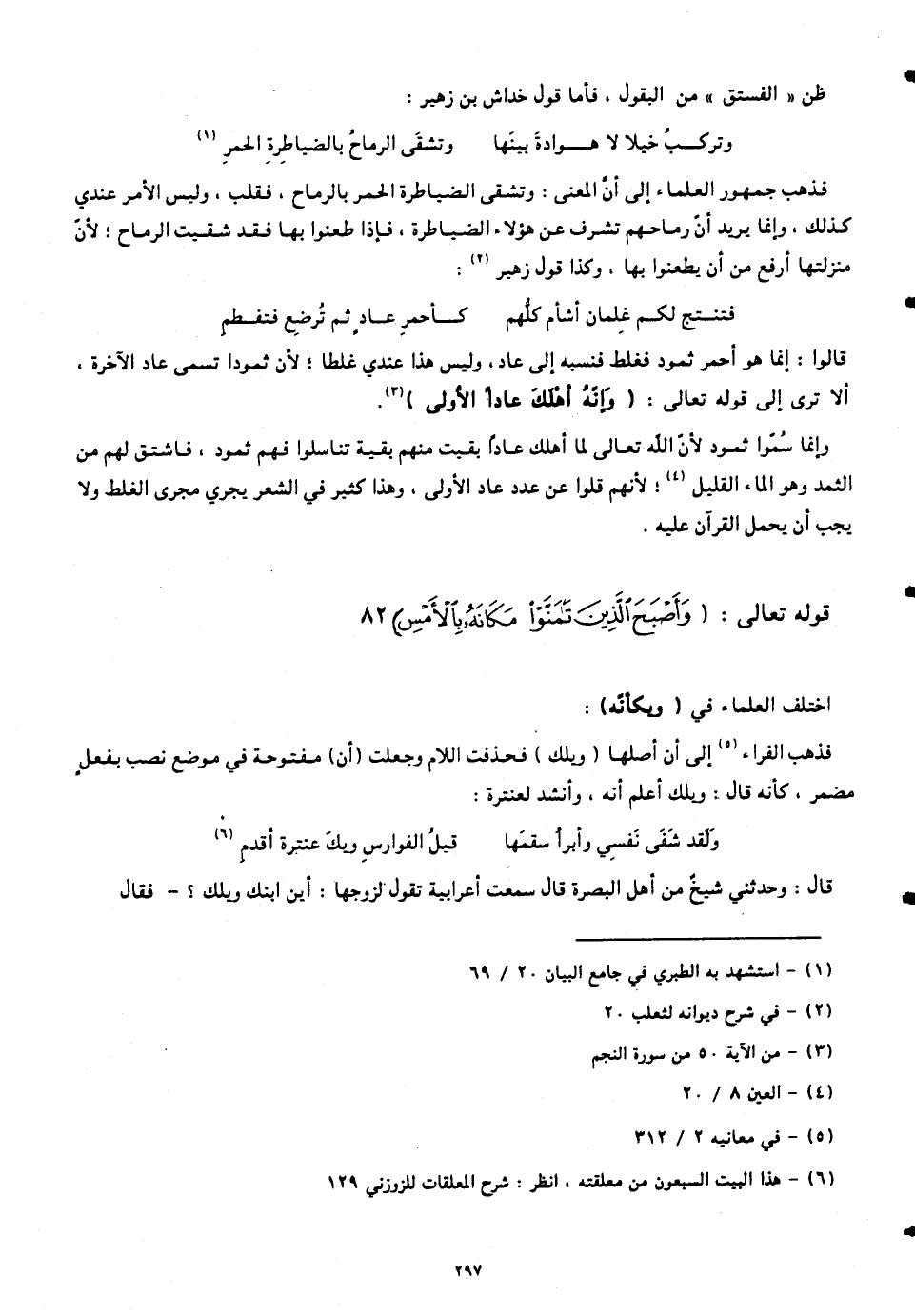 فذهب جمهور العلماء إلى أنّ المعنى: وتشقى الضياطرة الحمر بالرماح. فقلب، وليس الأمر عندي كذلك، وإنما يريد أنّ رماحهم تشرف عن هَؤُلَاءِ الضياطرة، فإذا طعنوا بها فقد شقيت الرماح؛ لأنَّ منزلتها أرفع من أن يطعنوا بها، وكذا قول زهير: