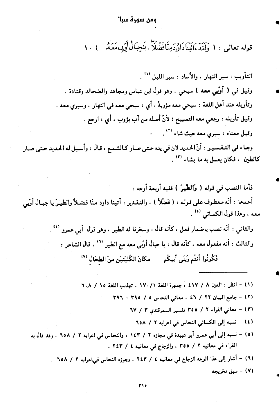 أحدها: أنّه معطوف على قوله: (فَضْلًا)، والتقدير: آتينا داود منَّا فَضْلًا والطيرَ يَا جِبَالُ أَوِّبِي معه، وهذا قول الكسائي.