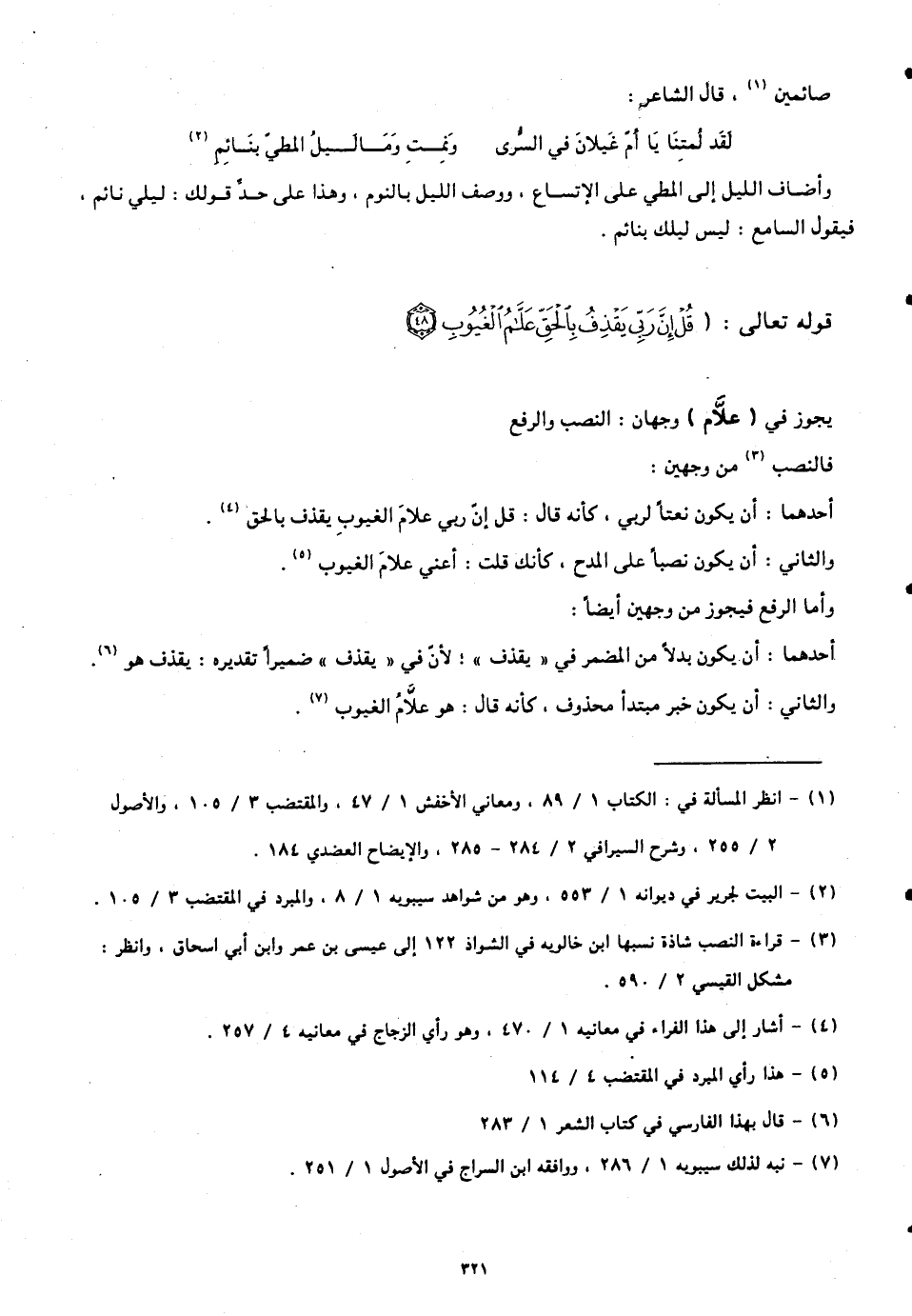 والثاني: أن يكون نصباً على المدح، كأنك قلت: أعني علامَ الغيوب.