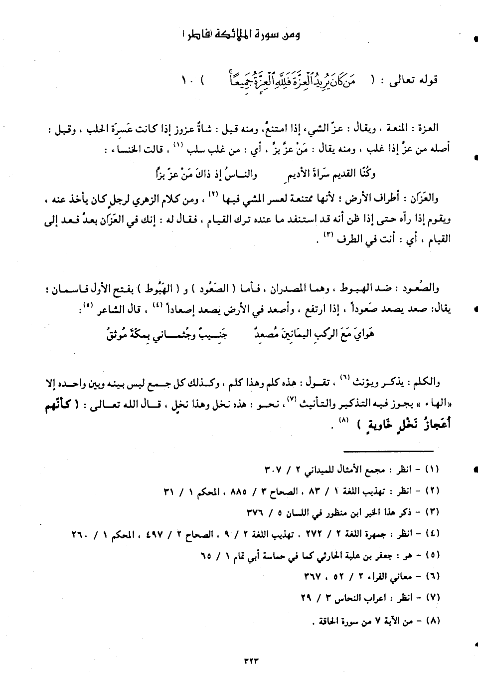 والكلم: يذكر ويؤنث، تقول: هذه كلم وهذا كلم، وكذلك كل جمع ليس بينه وبين واحده إلا " الهاء " يجوز فيه التذكير والتأنيث. نحو: هذه نخل وهذا نخلٍ، قال الله تعالى: (كَأَنَّهُمْ أَعْجَازُ نَخْلٍ خَاوِيَةٍ).