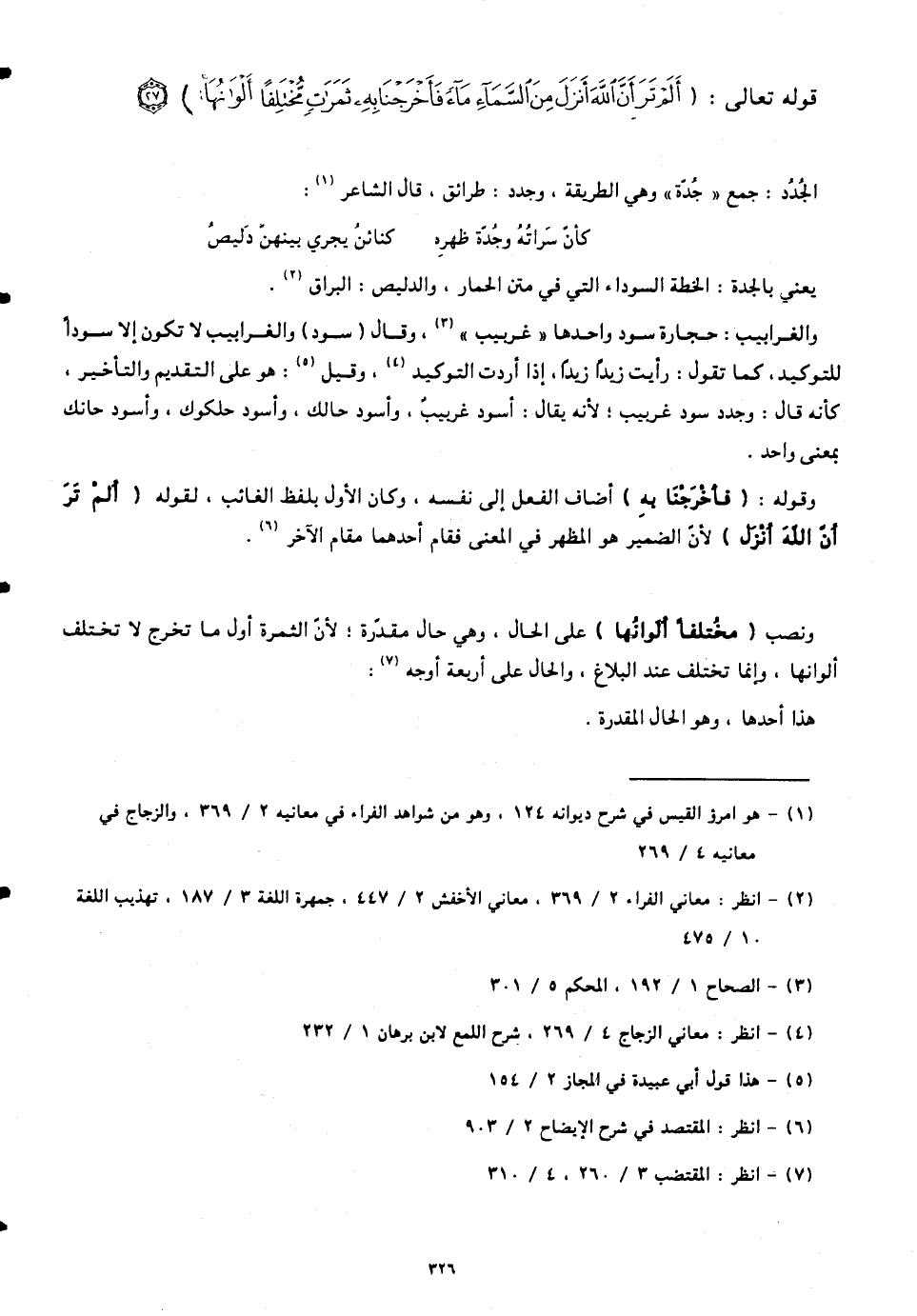 قوله تعالى: (أَلَمْ تَرَ أَنَّ اللَّهَ أَنْزَلَ مِنَ السَّمَاءِ مَاءً فَأَخْرَجْنَا بِهِ ثَمَرَاتٍ مُخْتَلِفًا أَلْوَانُهَا (27))