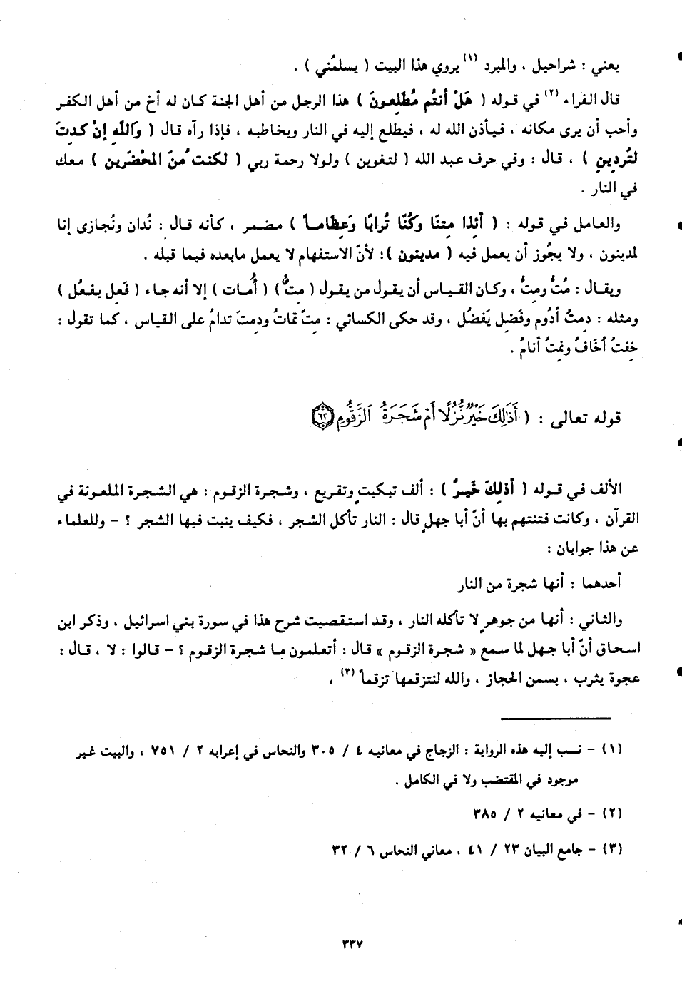 الألف في قوله (أَذَلِكَ خَيْرٌ): ألف تبكيبٍ وتقريع، وشجرة الزقوم: هي الشجرة الملعونة في القرآن، وكانت فتنتهم بها أنّ أبا جهل قال: النار تأكل الشجر، فكيف ينبت فيها الشجر؟ - وللعلماء عن هذا جوابان: