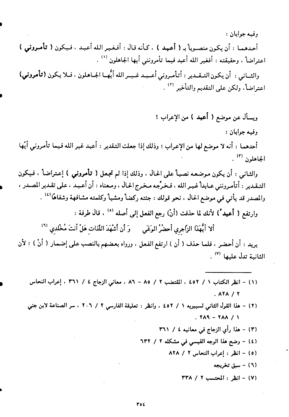 والثاني: أن يكون التقدير: أتأمروني أعبد غير الله أيُّها الجاهلون، فلا يكون (تَأْمُرُونِّي) اعتراضاً،: لكن على التقديم: التأخير.