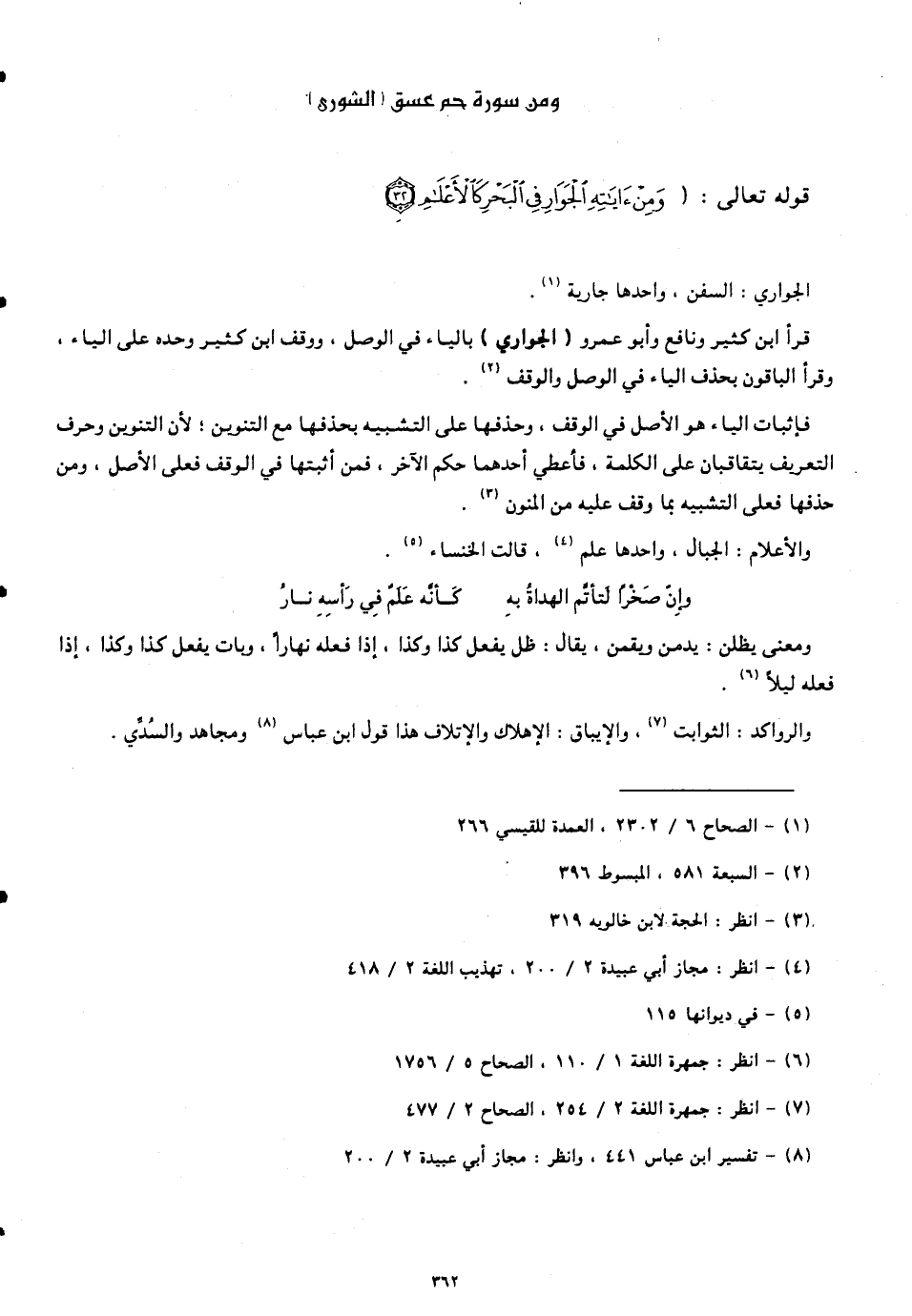قوله تعالى: (وَمِنْ آيَاتِهِ الْجَوَارِ فِي الْبَحْرِ كَالْأَعْلَامِ (32)