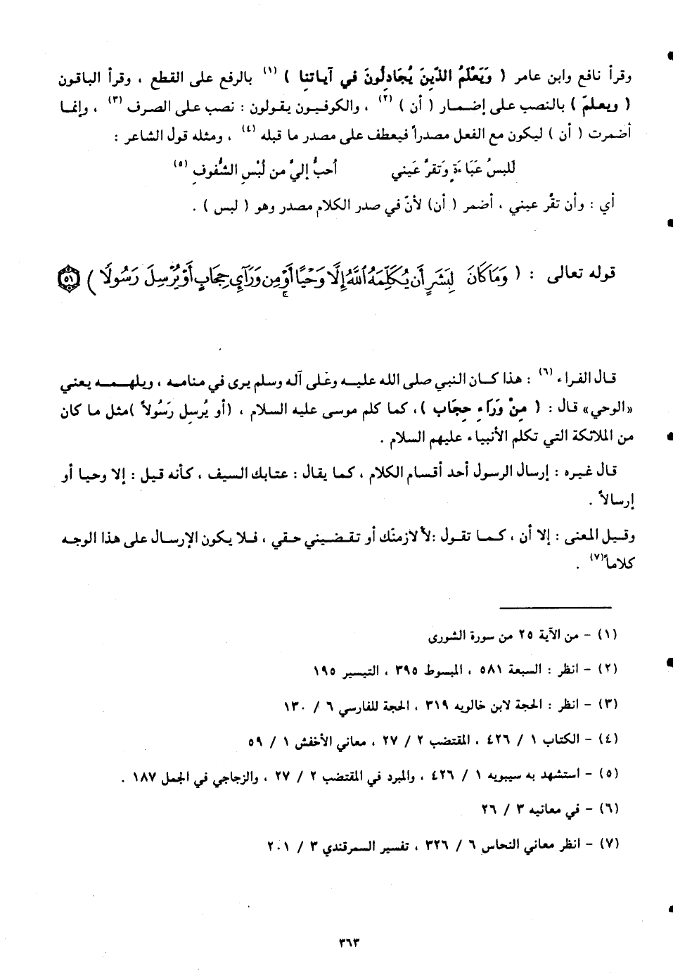 قوله تعالى: (وَمَا كَانَ لِبَشَرٍ أَنْ يُكَلِّمَهُ اللَّهُ إِلَّا وَحْيًا أَوْ مِنْ وَرَاءِ حِجَابٍ أَوْ يُرْسِلَ رَسُولًا (51))