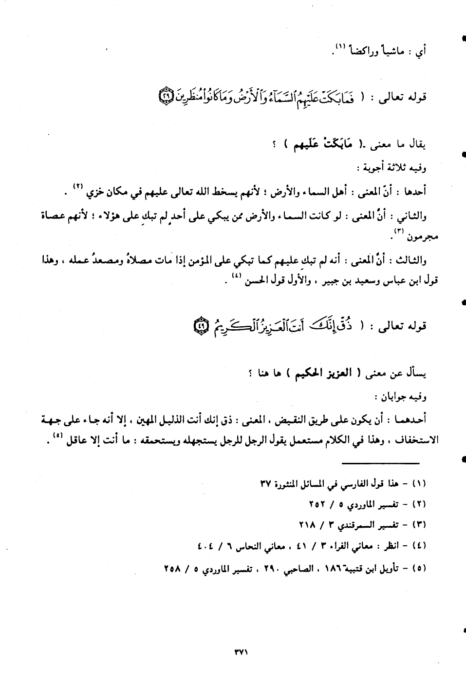 قوله تعالى: (فَمَا بَكَتْ عَلَيْهِمُ السَّمَاءُ وَالْأَرْضُ وَمَا كَانُوا مُنْظَرِينَ (29))