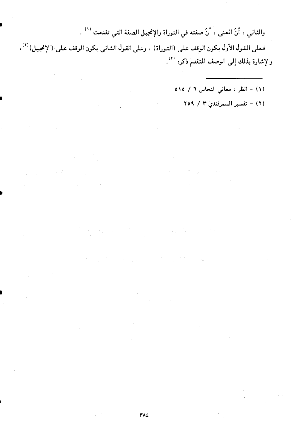 فعلى القول الأول يكون الوقف على (التوراة)، وعلى القول الثاني يكون الوقف على (الإنجيل)، والإشارة بذلك إلى الوصف المتقدم ذكره.
