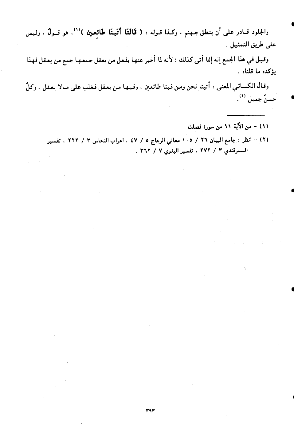 وقال الكسائي المعنى: أتينا نحن ومن فينا طائعين، وفيها من يعقل فغلب على ما لا يعقل، وكلّ حسنٌ جميل.
