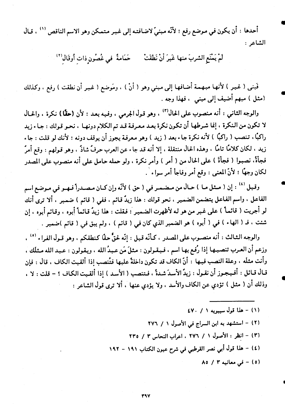 والوجه الثاني: أنّه منصوب على الحال. وهو قول الجرمي، وفيه بعد؛ لأنّ (حقاً) نكرة، والحال لا تكون من النكرة، إنما شرطها أن تكون نكرة بعد معرفة قد تم الكلام دونها، نحو قولك: جاء زيد راكبا، تنصب (راكباً) لأنّه نكرة جاء بعد (زيد) وهو معرفة يجوز أن يوقف دونه؛ لأنَّك لو قلت: جاء زيد، لكان كلامًا تامًّا، وهذه الحال منتقلة، إلا أنّه قد جاء عن العرب حرفٌ شاذٌ، وهو قولهم: وقع أمرٌ فجأةً، نصبوا (فجأة) على الحال من (أمر) وأمر نكرة، ولو حصله حامل على أنّه منصوب على المصدر لكان وجهاً؛ لأنّ المعنى: وقع أمر وفاجأ أمر سواء.