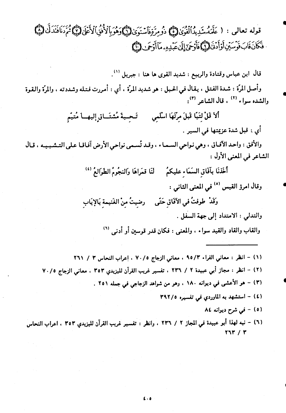 قوله تعالى: (عَلَّمَهُ شَدِيدُ الْقُوَى (5) ذُو مِرَّةٍ فَاسْتَوَى (6) وَهُوَ بِالْأُفُقِ الْأَعْلَى (7) ثُمَّ دَنَا فَتَدَلَّى (8) فَكَانَ قَابَ قَوْسَيْنِ أَوْ أَدْنَى (9) فَأَوْحَى إِلَى عَبْدِهِ مَا أَوْحَى (10))
