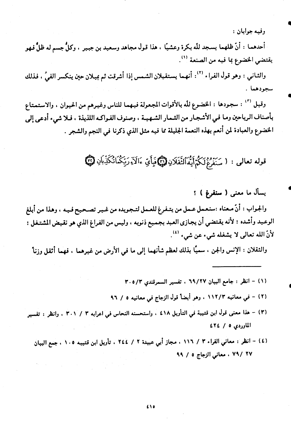 قوله تعالى: (سَنَفْرُغُ لَكُمْ أَيُّهَ الثَّقَلَانِ (31) فَبِأَيِّ آلَاءِ رَبِّكُمَا تُكَذِّبَانِ (32))