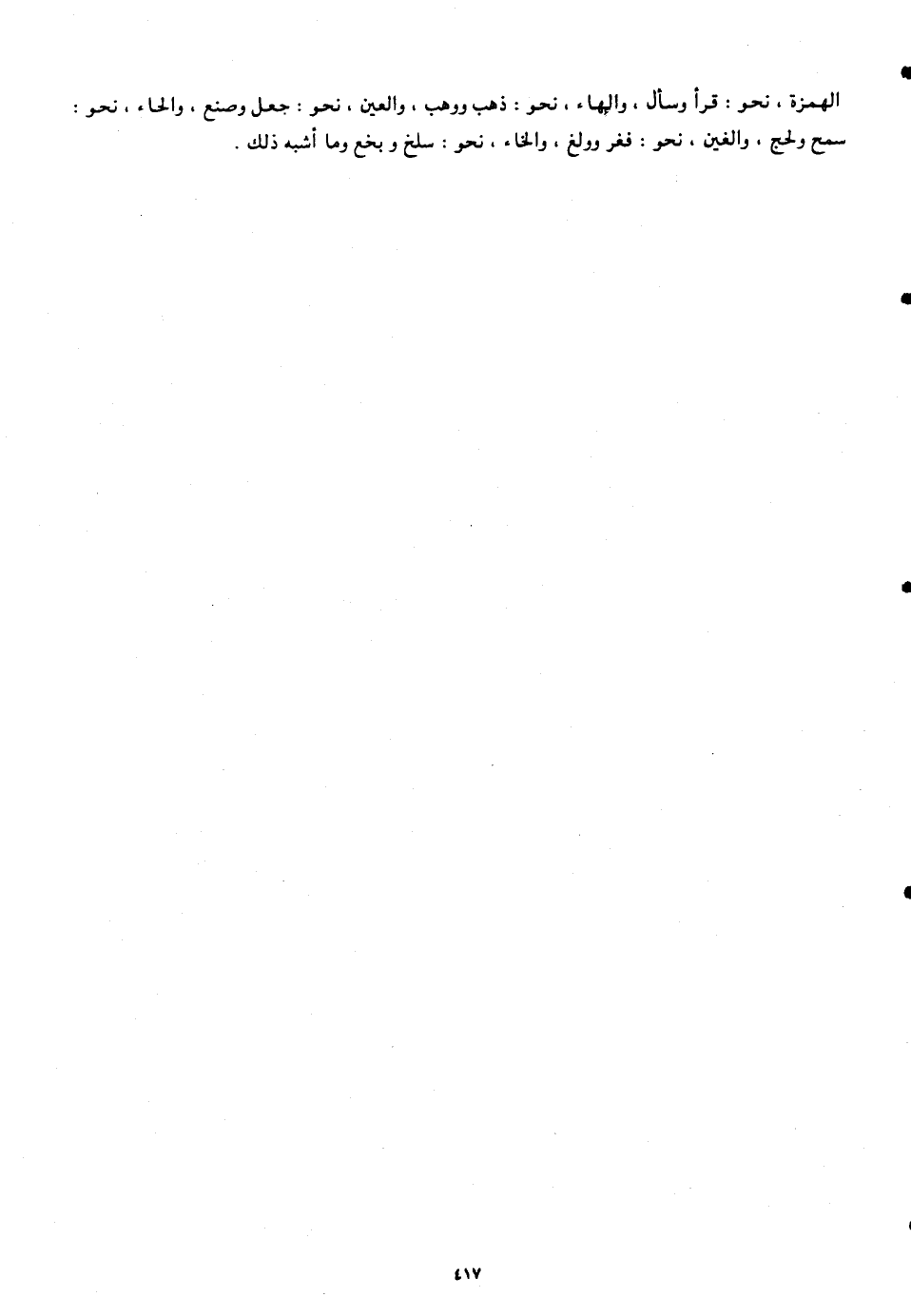 الهمزة، نحو: قرأ وسأل، والهاء، نحو: ذهب ووهب، والعين. نحو: جعل وصنع، والحاء، نحو: سمح ولحج. والغين، نحو: فغر وولغ. والخاء، نحو: صلخ وبخع وما أشبه ذلك.