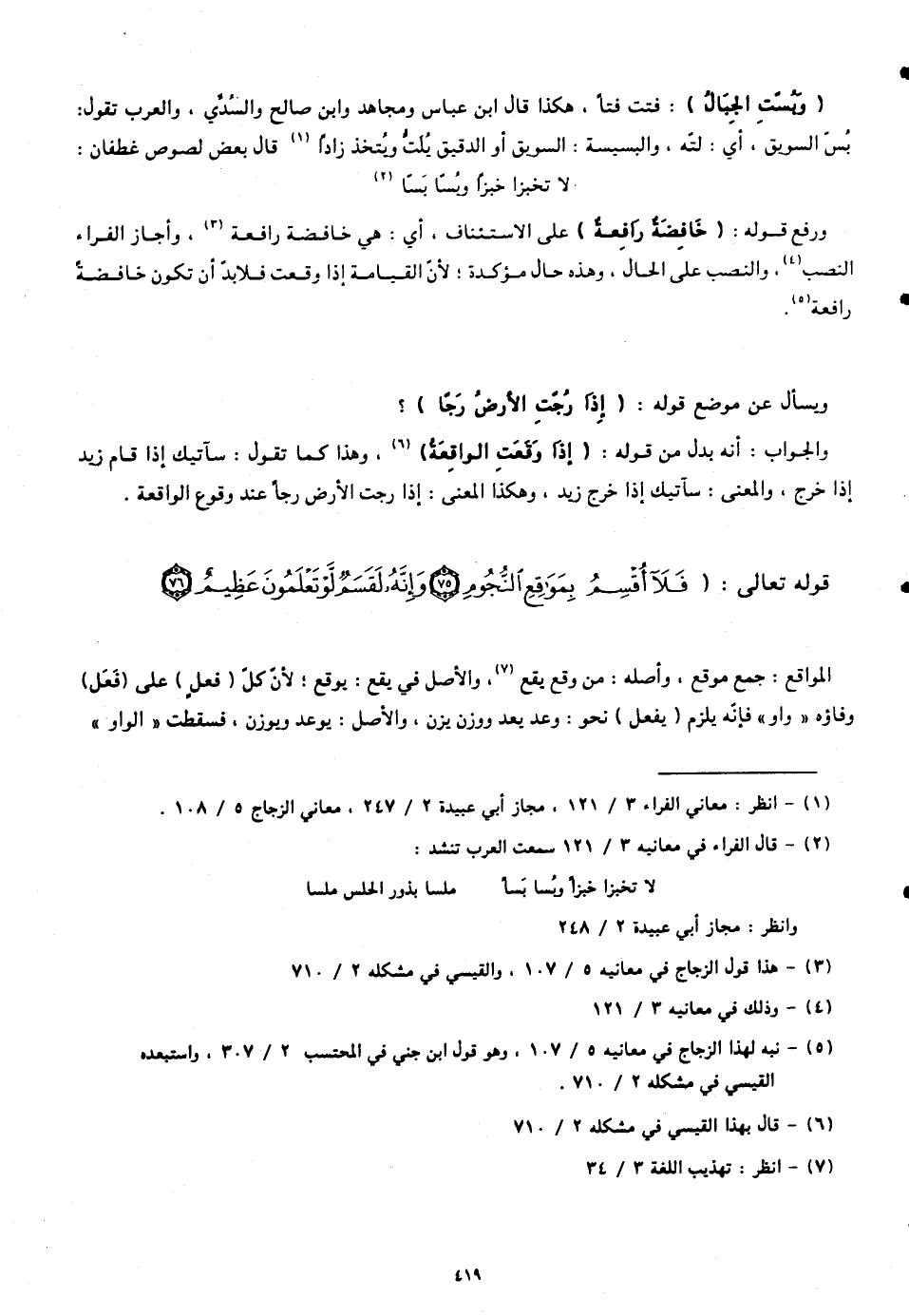 قوله تعالى: (فَلَا أُقْسِمُ بِمَوَاقِعِ النُّجُومِ (75) وَإِنَّهُ لَقَسَمٌ لَوْ تَعْلَمُونَ عَظِيمٌ (76))