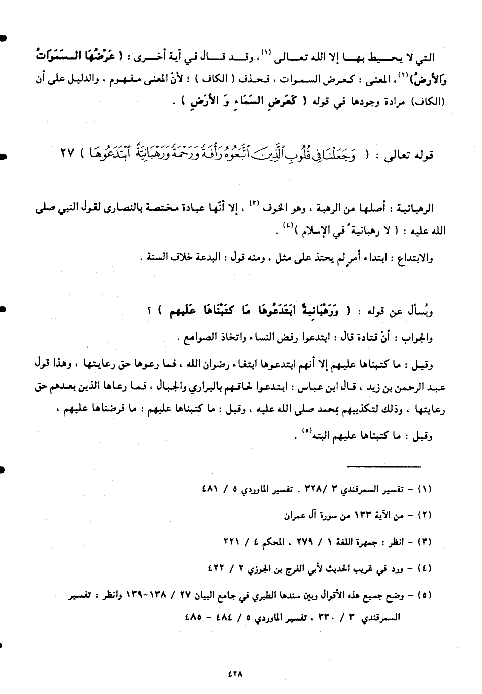 قوله تعالى: (وَجَعَلْنَا فِي قُلُوبِ الَّذِينَ اتَّبَعُوهُ رَأْفَةً وَرَحْمَةً وَرَهْبَانِيَّةً ابْتَدَعُوهَا)