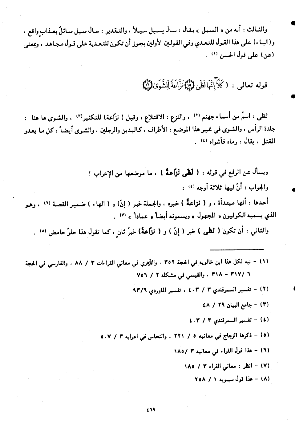 والثاني: أن تكون (لَظَى) خبر (إنّ) و (نَزَّاعَةٌ) خبرٌ ثانٍ. كما تقول هذا حلوٌ حامضٌ.