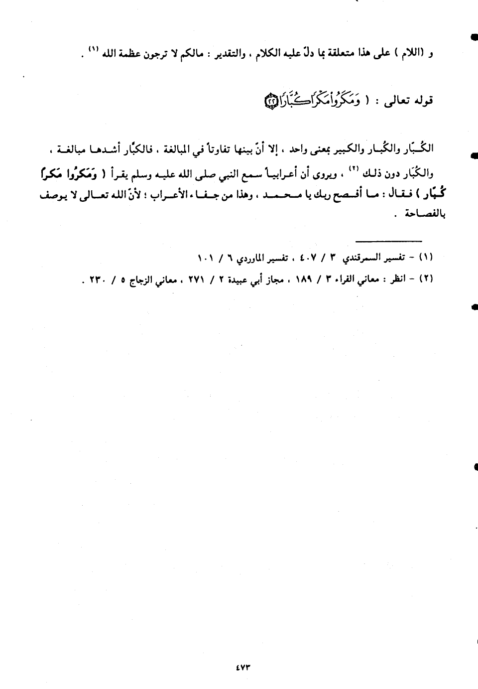 قوله تعالى: (وَمَكَرُوا مَكْرًا كُبَّارًا (22))