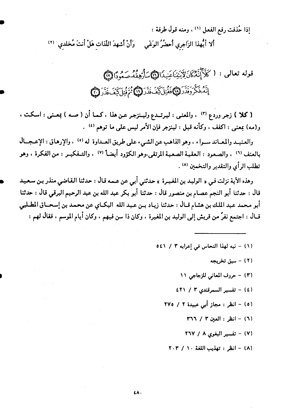 والعنيد والمعاند سواء، وهو الذاهب عن الشيء على طريق العداوة له، والإرهاق: الإعجال بالعنف، والصعود: العقبة الصعبة المرتقى، وهو الكؤود أيضاً، والتفكير: من الفكرة، وهو تطلب الرأي والتقدير والتخمين.